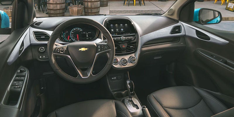 A 7-inch touch screen sits on the dashboard, which helps you stay connected through a Wi-Fi hot spot, two USB ports, a 12-volt outlet, and Apple CarPlay and Android Auto integration. Drivers can sync their smartphones to the Spark to play their saved music, access their favorite navigation apps, and use voice commands to make phone calls and send text messages.