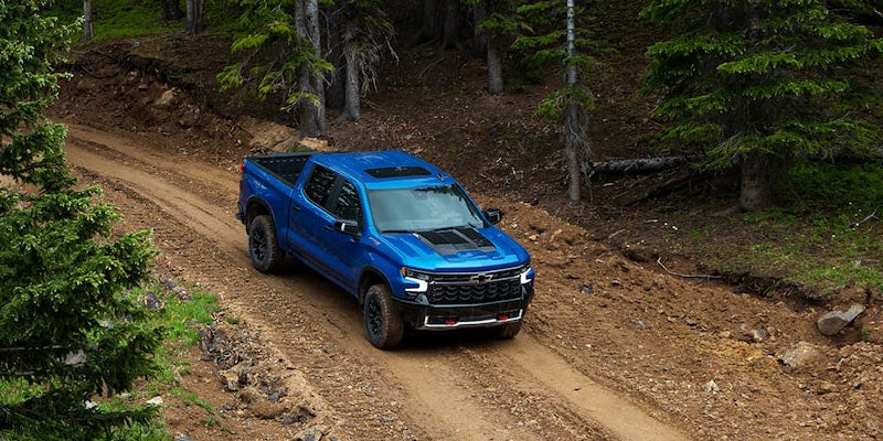 Incredible performance makes driving the Silverado more fun than ever. The off-road-ready ZR2 comes with multimeric DSSV dampers, a high-approach front bumper, and front/rear electronic locking differentials. With the 6.2-liter EcoTec3 engine, you can haul up to 13,300 pounds when properly equipped. Additional features include StabiliTrak electronic stability control and either rear-wheel or four-wheel drive systems to help you navigate through rain, snow, mud, and on any city street.