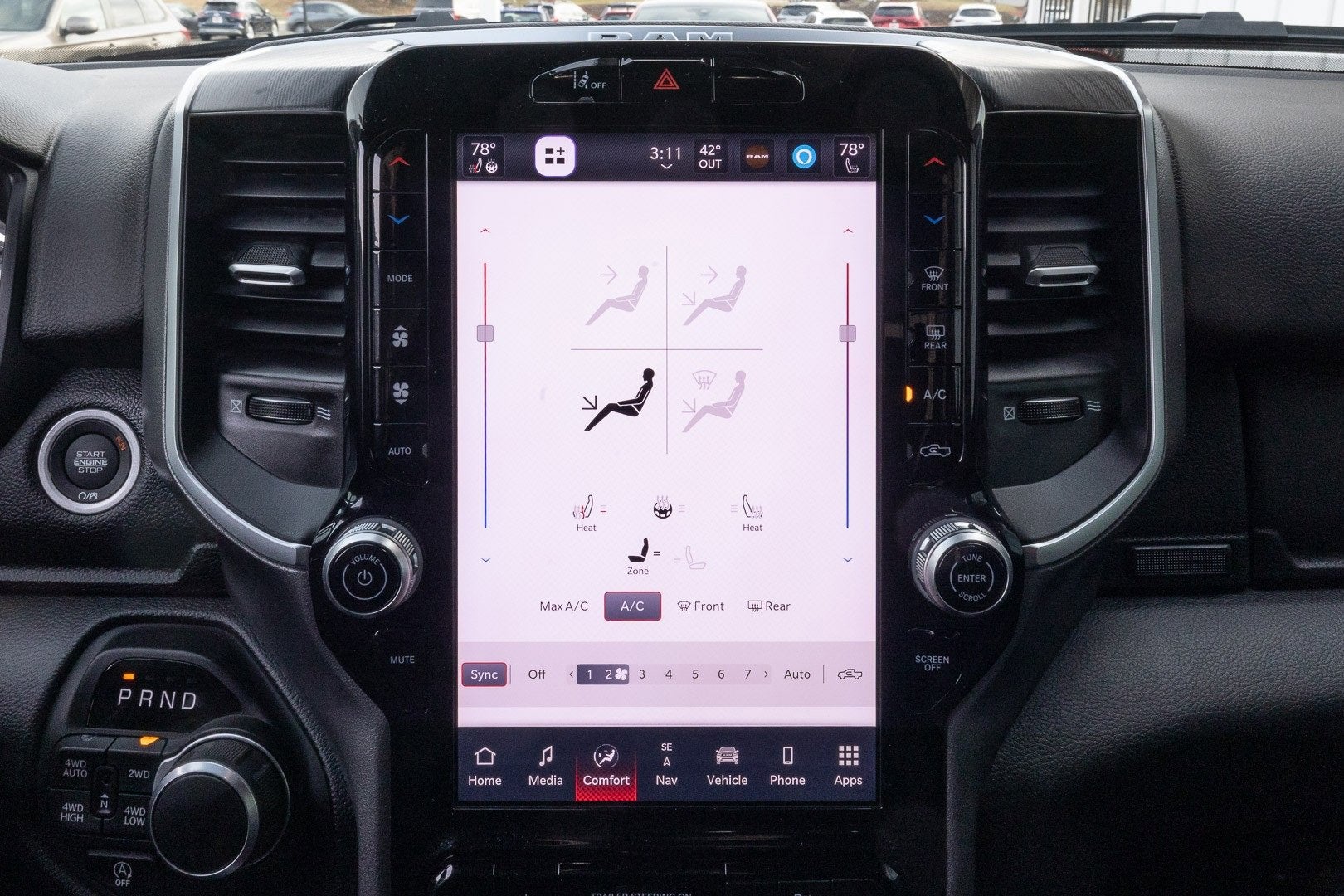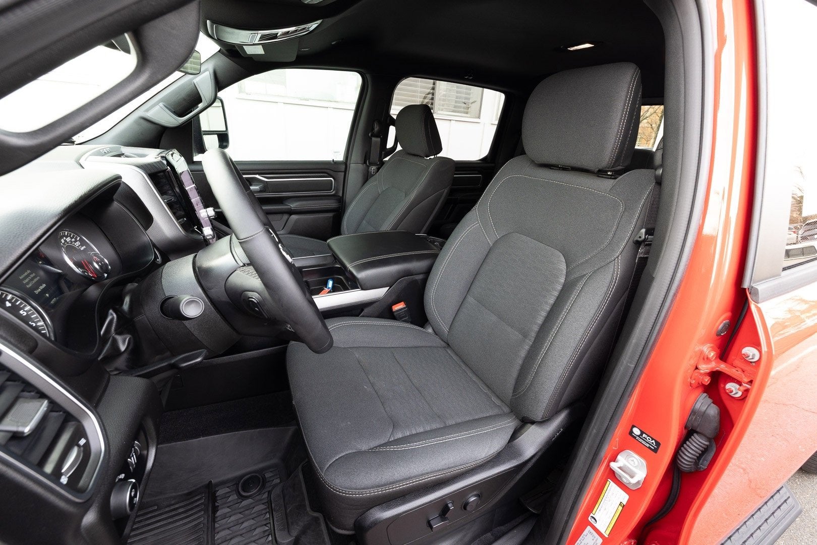 Virginia State Inspected, 115V Auxiliary Power Outlet, 115V Auxiliary Rear Power Outlet, 12 Touchscreen Display, 2nd Row In Floor Storage Bins, 400W Inverter, 4G LTE Wi-Fi Hot Spot, 9 Amplified Speakers w/Subwoofer, Accent Color Door Handles, Accent Color Premium Power Mirrors, Accent Color Tailgate Handle, Air Conditioning ATC w/Dual Zone Control, Anti-Spin Differential Rear Axle, Apple CarPlay, Apple CarPlay/Android Auto, Auto Power-Folding Mirrors, Auto-Dimming Exterior Driver Mirror, Auto-Dimming Rear-View Mirror, Big Horn Level 2 Equipment Group, Black Exterior Mirrors, Black Exterior Truck Badging, Black Headlamp Bezels, Black Interior Accents, Black Painted Exterior Mirrors Caps, Black Premium Power Mirrors, Black Tail Lamp Bezels, Black Trailer Tow Power Mirrors, Body Color Front Bumper, Body Color Rear Bumper w/Step Pads, Cluster 7.0 TFT Color Display, Configurable Drive Mode, Connected Travel & Traffic Services, Connectivity - US/Canada, Convex Wide-Angle Exterior Mirror Insert, Deluxe Cloth Bucket Seats, Exterior Mirrors Courtesy Lamps, Exterior Mirrors w/Heating Element, Exterior Mirrors w/Supplemental Signals, Glove Box Lamp, Google Android Auto, GPS Antenna Input, GPS Navigation, Grille Black Surround Black Mesh, HD Radio, Heated Front Seats, Heated Steering Wheel, Integrated Voice Command w/Bluetooth®, Leather Wrapped Steering Wheel, LED Dome Lamp w/On/Off Switch, LED Footwell Lighting, Manual Folding Exterior Mirrors, Manual Telescoping Mirrors, Media Hub w/2 Charge Only USBs, Mirror Clearance/Running Lights, Night Edition, Overhead LED Lamps, Power 2-Way Driver Lumbar Adjust, Power Adjust 8-Way Driver Seat, Power Adjustable Pedals, Power-Adjustable Convex Aux Mirrors, Premium Overhead Console, Quick Order Package 21Z Big Horn, Radio: Uconnect 5 Nav w/12.0 Display, RAM Grille Badge - Black, Rear Power Sliding Window, Rear Window Defroster, Remote Tailgate Release, Security Alarm, SiriusXM w/360L, Steering Wheel Mounted Audio Controls, Sun Visors w/Illuminated Vanity Mirrors, Trailer Brake Control, Trailer Reverse Steering Control, Trailer Tire Pressure Monitoring System, Trailer Tow Group, Trailer Tow Mirrors, Universal Garage Door Opener, USB Host Flip, Wheels: 20 x 9.0 Aluminum Painted Clad, 3 Rear Seat Head Restraints, 3.21 Rear Axle Ratio, 3.92 Rear Axle Ratio, 4 Way Front Headrests, 4-Wheel Disc Brakes, 6 Speakers, ABS brakes, Air Conditioning, Alloy wheels, AM/FM radio, Auto High-beam Headlights, Brake assist, Bucket Seats, Bumpers: chrome, Cloth Bench Seat, Compass, Delay-off headlights, Driver door bin, Dual front impact airbags, Dual front side impact airbags, Electronic Stability Control, Front anti-roll bar, Front Center Armrest w/Storage, Front fog lights, Front reading lights, Front Seat Back Map Pockets, Front wheel independent suspension, Full Length Floor Console, Fully automatic headlights, Heated door mirrors, Illuminated entry, Low tire pressure warning, Manual Adjust 4-Way Front Passenger Seat, Mopar Black Tubular Side Steps, MOPAR Front & Rear Rubber Floor Mats, Occupant sensing airbag, Outside temperature display, Overhead airbag, Overhead console, Panic alarm, ParkView Rear Back-Up Camera, Passenger door bin, Passenger vanity mirror, Power door mirrors, Power steering, Power windows, Radio data system, Radio: Uconnect 5 W w/8.4 Display, RAM Grille Badge - Chrome, Rear 60/40 Folding Seat, Rear anti-roll bar, Rear Center Armrest, Rear seat center armrest, Rear step bumper, Remote keyless entry, Speed control, Split folding rear seat, Supplier Part Tracking (J-1), Tachometer, Telescoping steering wheel, Tilt steering wheel, Traction control, Trip computer, Variably intermittent wipers, Voltmeter, Wheels: 18 x 8 Cast-Aluminum Painted, LoJack, 115V Auxiliary Power Outlet, 115V Auxiliary Rear